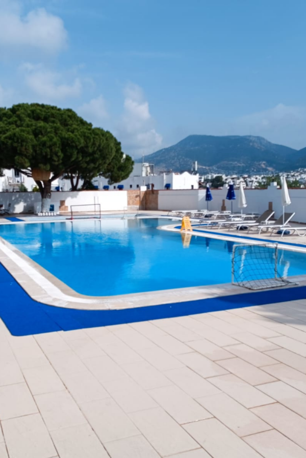 Açık yüzme havuzumuz, günün sıcak saatlerinde serinlemek ve rahatlamak isteyen misafirlerimiz için idealdir. Şezlong alanlarıyla birlikte konforlu bir dinlenme ortamı sunar.